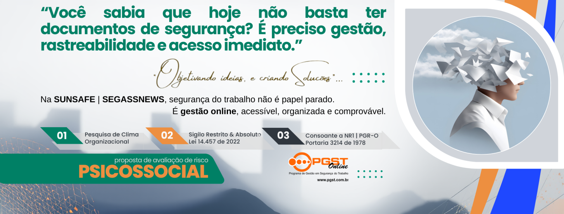Objetivando aprimorar o banco de dados entre as áreas de saúde e segurança do trabalho a SEGASSNEWS dispõe de uma ferramenta em gestão integrada PGST Online, para fins de qualificação técnica do processo organizacional da sua empresa.